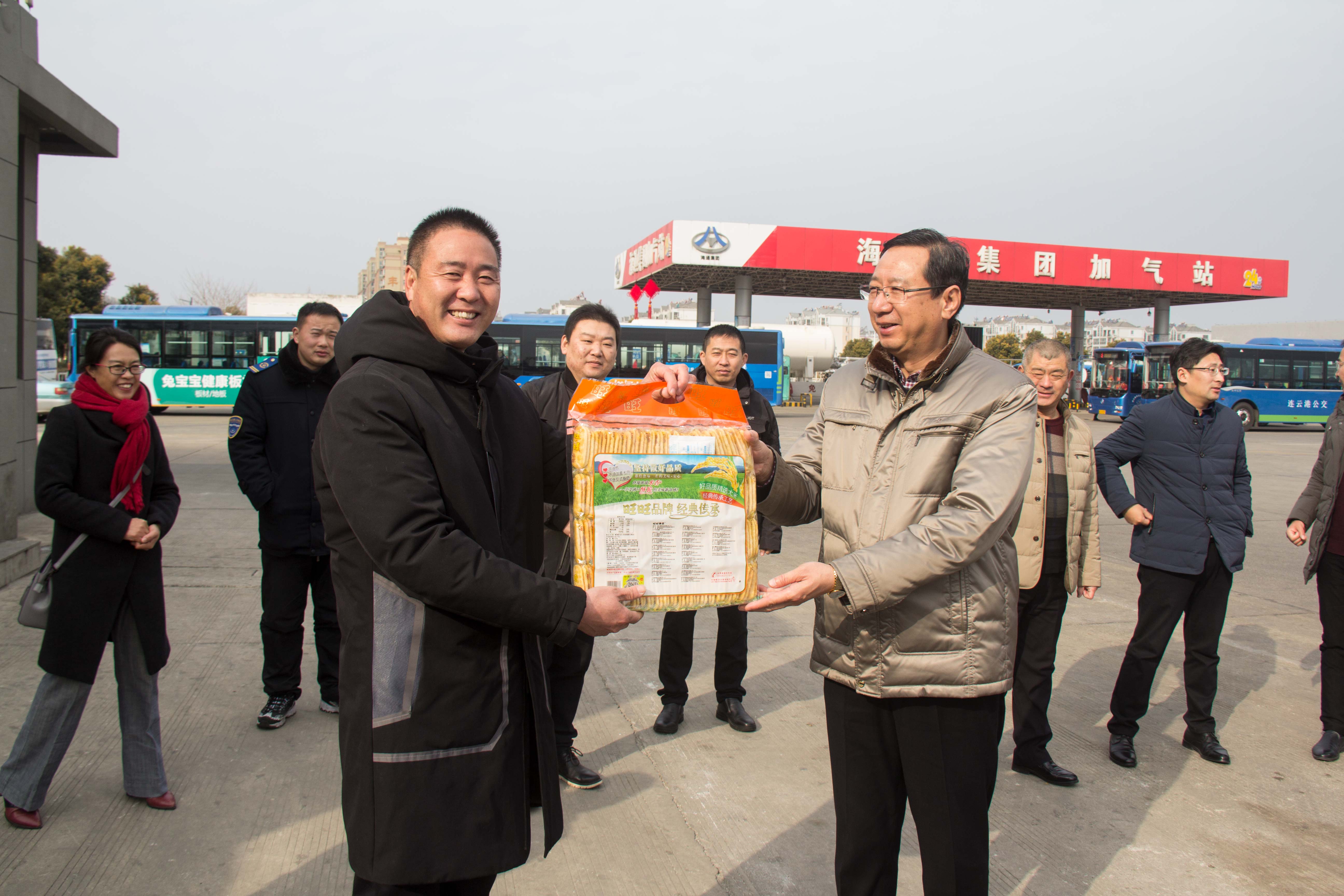 刘佃华一行走访慰问了公交海通公司、公交快速公司、公交东部公司、佳连公司、旅游公司、汽服公司等权属单位。每到一处,刘佃华等都与坚守在工作岗位的干部职工亲切握手,说声“过年好”,感谢大家一年来的辛勤付出,道声“辛苦了”,感谢他们在春节期间为保障广大乘客出行所作出的努力。