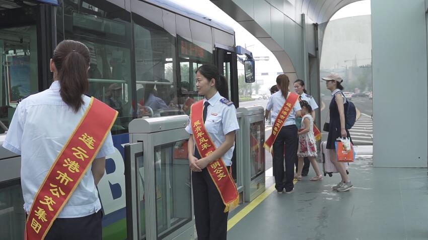 7月28日,为积极配合做好国家文明城市创建工作,公交服务热线组织开展进站台文明导乘活动,实行上、下午轮流值班制度,在BRT凌州广场站引导乘客有序乘车,先下后上,维护了良好的乘车秩序,展示公交青年的风采。
