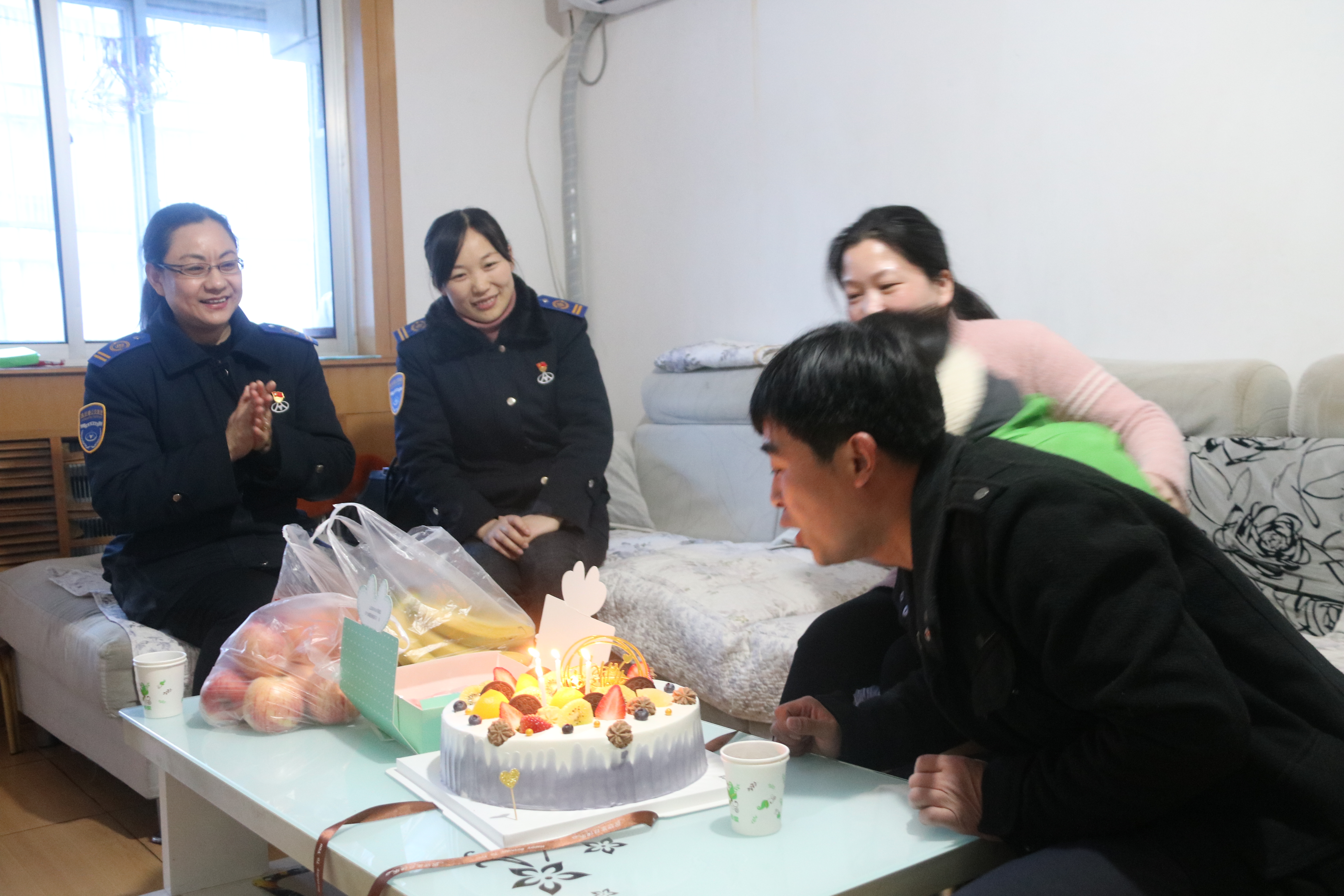 “祝你生日快乐,祝你生日快乐……”摇曳的烛光伴随着温馨的生日祝福传遍了房间的角落。3月5日这天正是公交事业一部59路驾驶员王海涛的40岁生日,受集团工会委托,公交事业一部总支书记王有利,工会主席胡秀琴一行带着生日蛋糕,前往王海涛的家中,为他过上了一个特殊的生日。