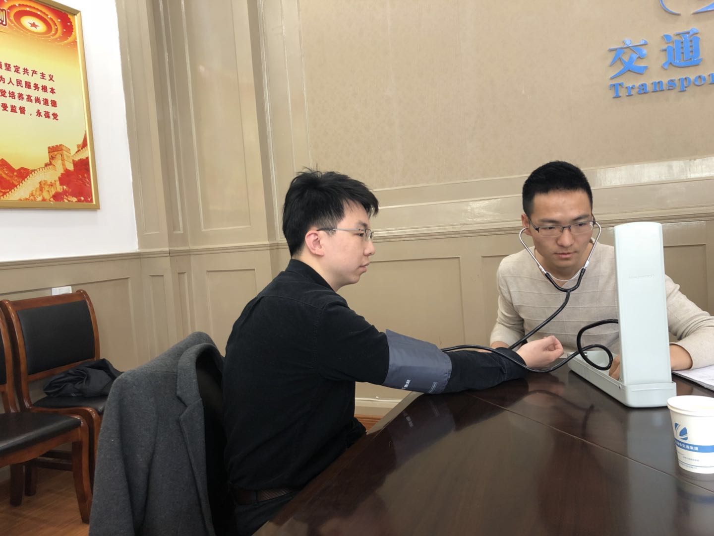 在义诊现场,沈龙一边认真地给职工检查身体,一边耐心地解答大家提出的疑难问题。检查、诊断、宣教、量血压等义诊工作有条不紊。不仅就职工个人的健康问题给予科学的建议,并且也向大家宣传了正确保持身体健康的养生窍门。