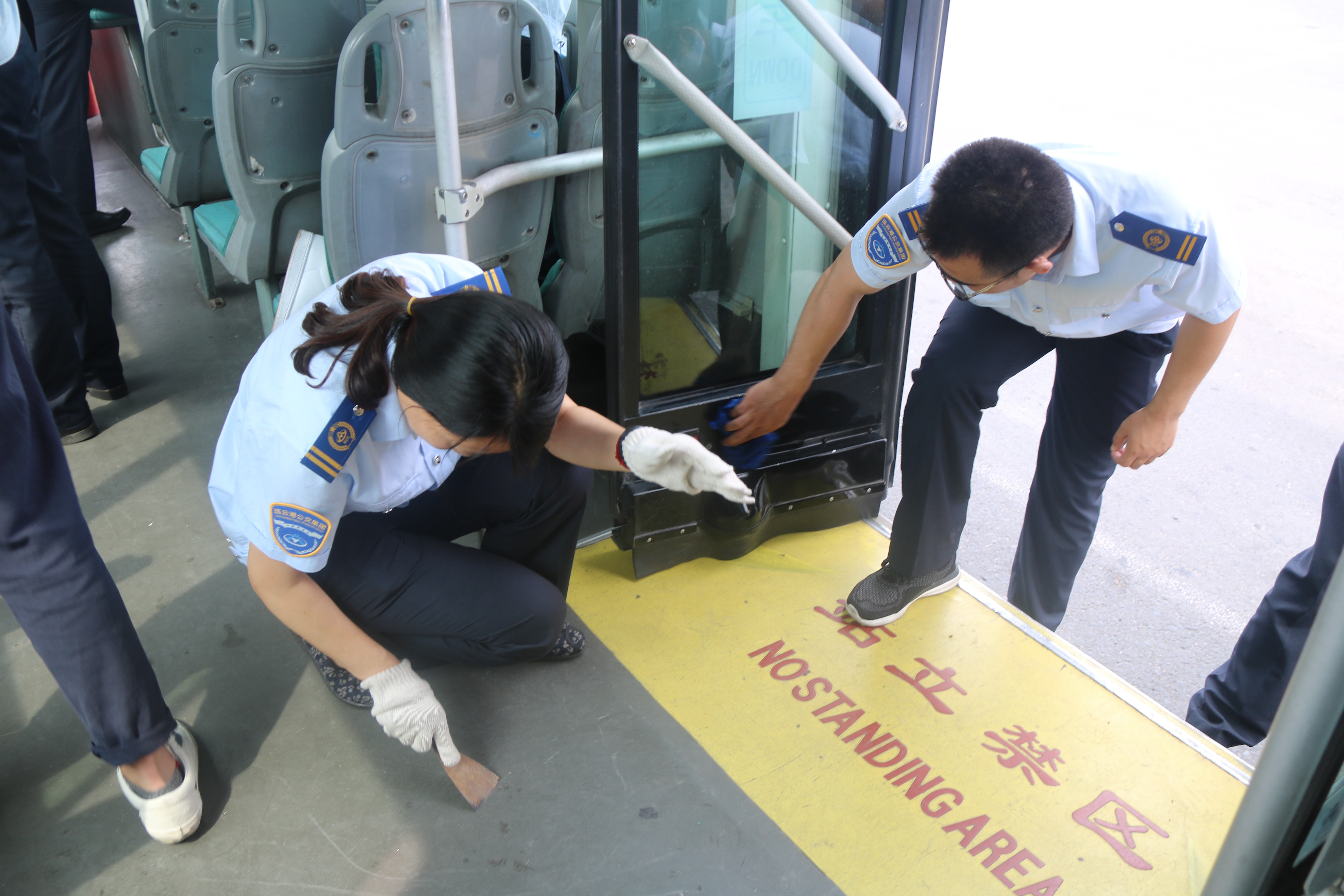 公交快速公司党支部为增强党员服务意识、改进服务作风、提高服务水平,践行党员“微服务”,根据上级党委“关于组织开展纪念建党96周年系列活动”的文件要求,6月30日下午,组织20名党员志愿者,在海州客运站集中开展B12线车车厢卫生清扫清洁志愿服务活动,党员们用海绵清洗装饰板上的污垢,用铲子铲除车内地板上的口香糖,擦洗车顶空调滤网处等等,不放过每一处卫生死角,积极营造真抓实干的良好氛围。