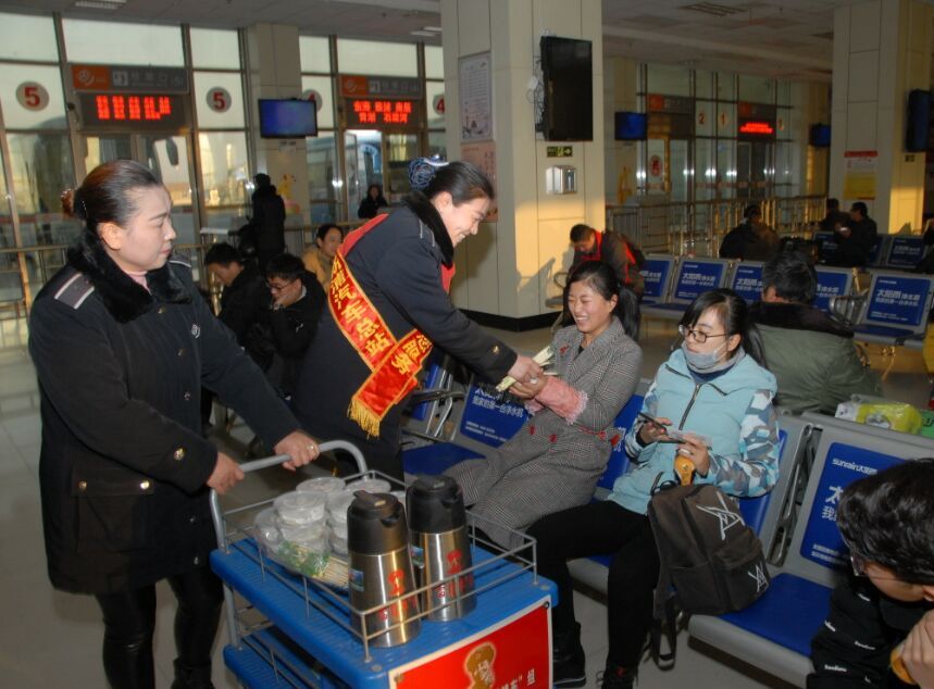 “爱心水饺”煮好了!看到候车室里还有好多旅客不好意思来领水饺,“雷锋车”手孙书语又和姐妹们推着装有一盒盒水饺的“雷锋车”流动服务车,穿行于一排排座椅之中,把“爱心水饺”送到旅客面前。这一早上,冬至节日的候车室里,小车过处水饺飘香、爱心满满,水饺到时欢声笑语、其乐融融……