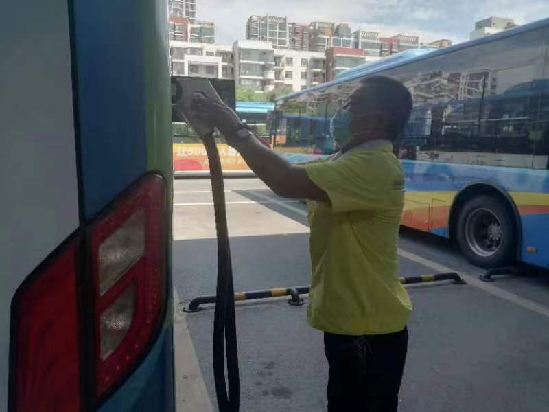 爬满汗水的面孔,浸透汗水的衣服,炎炎烈日下,挥汗如雨的身影定格成一道亮丽的风景,一直默默无闻的坚守,无怨无悔的奉献,他是一名平凡的不能再平凡的一线充电工人,却用坚守和付出给人们带来最多的感动。刚结束三台车的充电工作,纪祥年又开始打扫场站卫生,他笑着说:“在充电桩工作那么些年,场站就是我另外一个家,谁不想家里干干净净啊!”