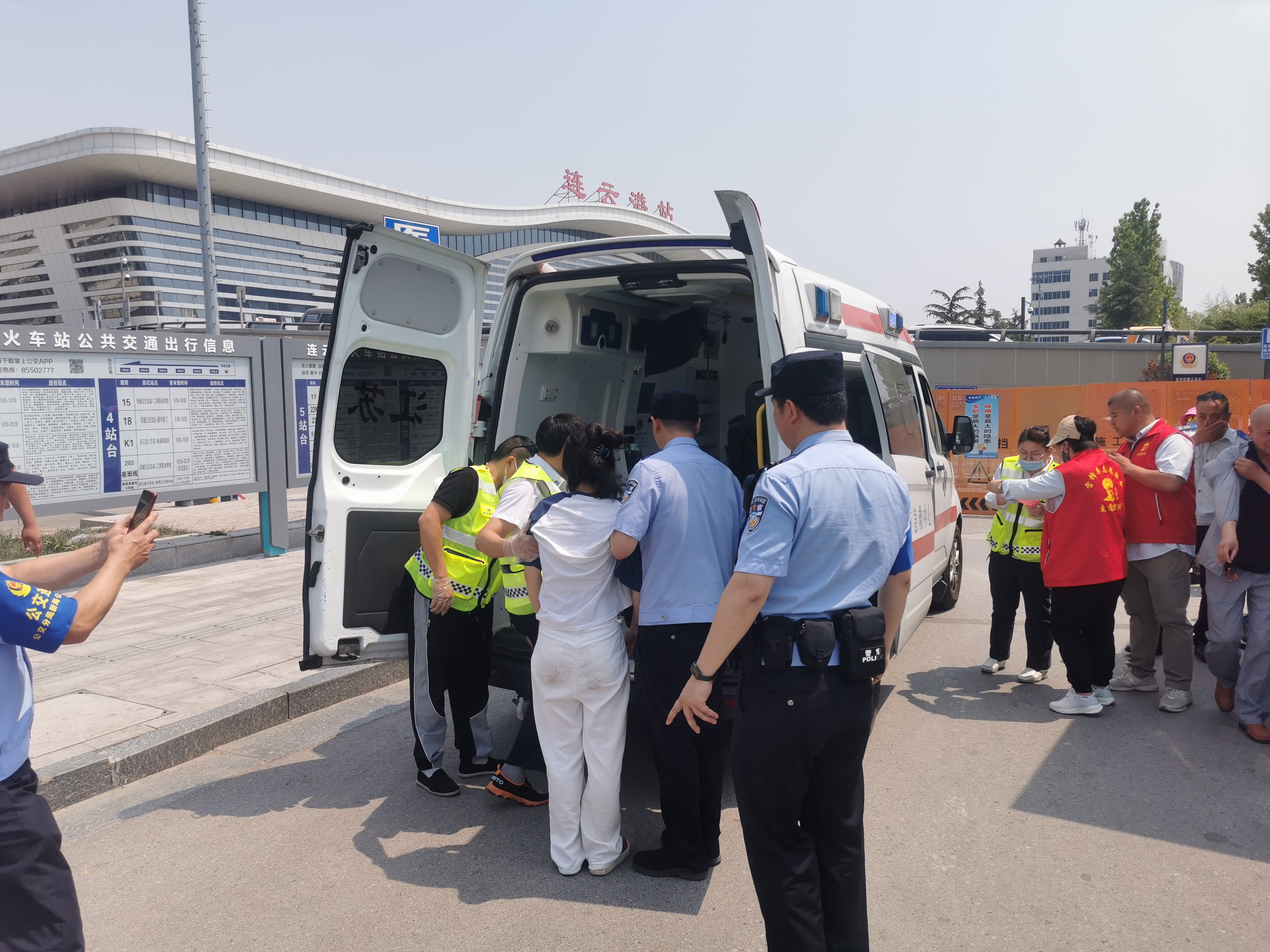 6月10日上午10时30分许,高铁站公交站内一名小女孩因身体不适晕倒在地,情况十分危急。公交志愿者孙海洋迅速上前查看,同时,其他志愿服务人员也闻讯赶来协助。
