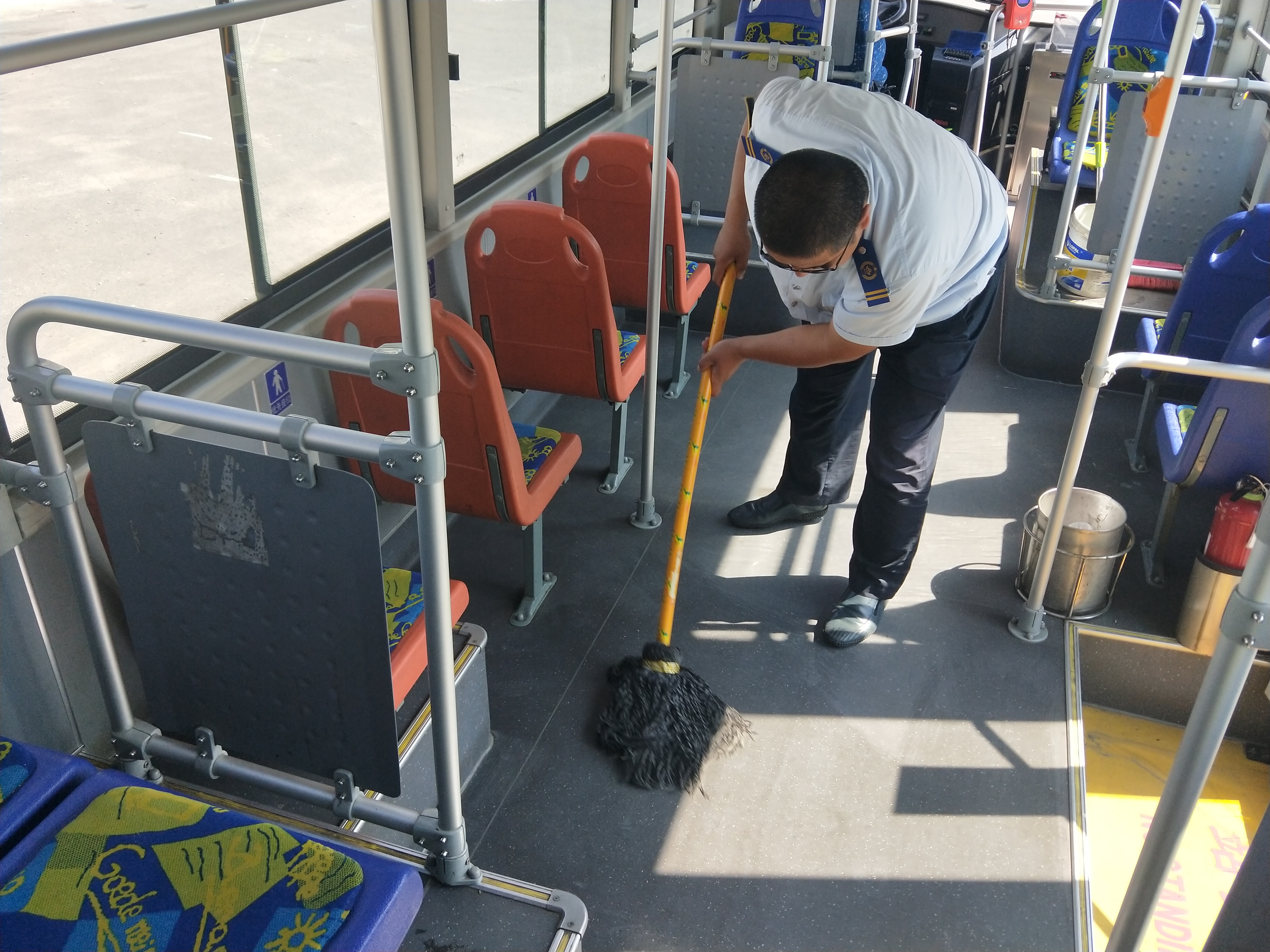 高温使用空调频繁,为确保乘客拥有一个干净、舒适的乘车环境,公交集团东部公司驾驶员师傅顶着高温清洗车辆卫生,驾驶员师傅们及时清洗空调滤网,确保车内空气清新。