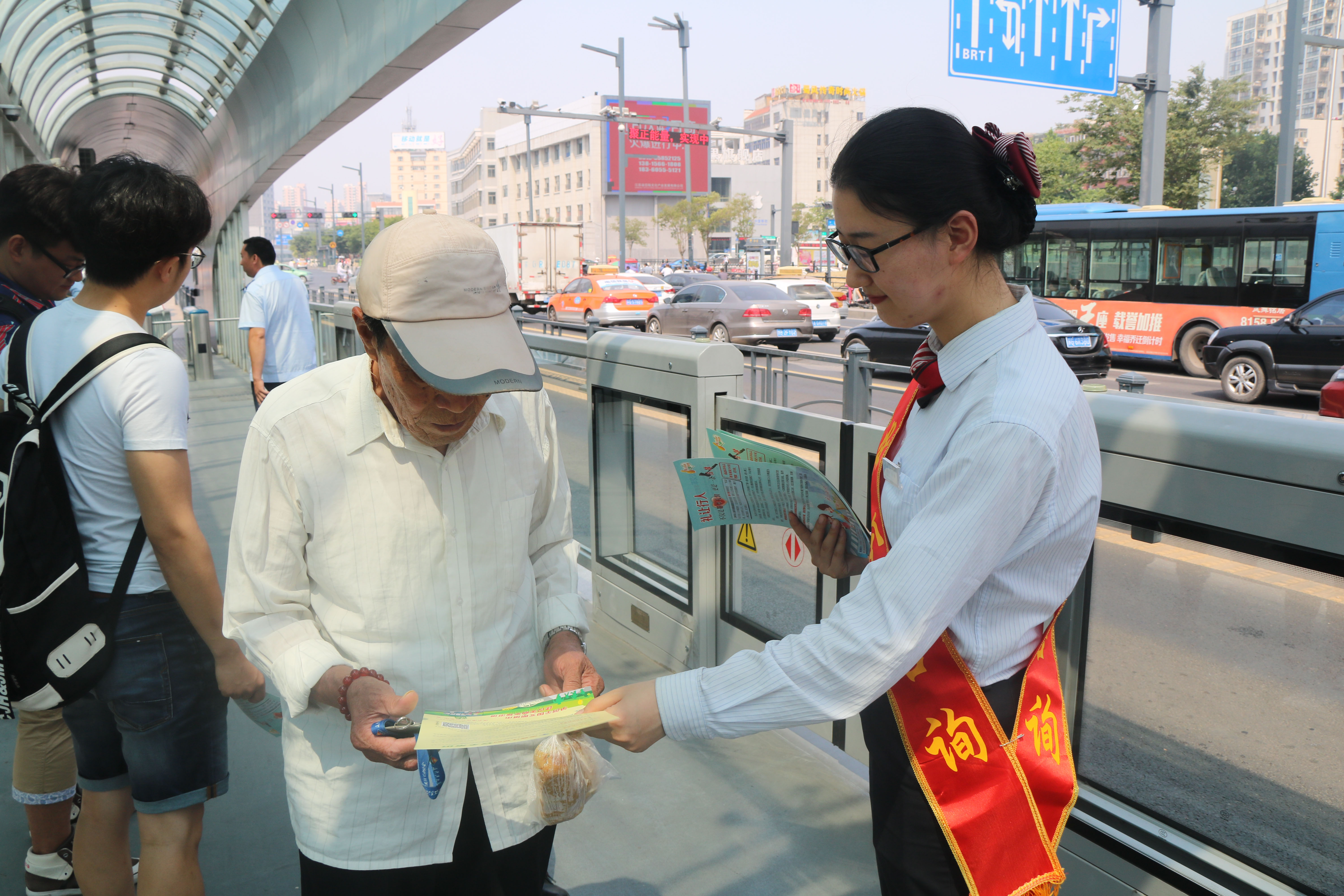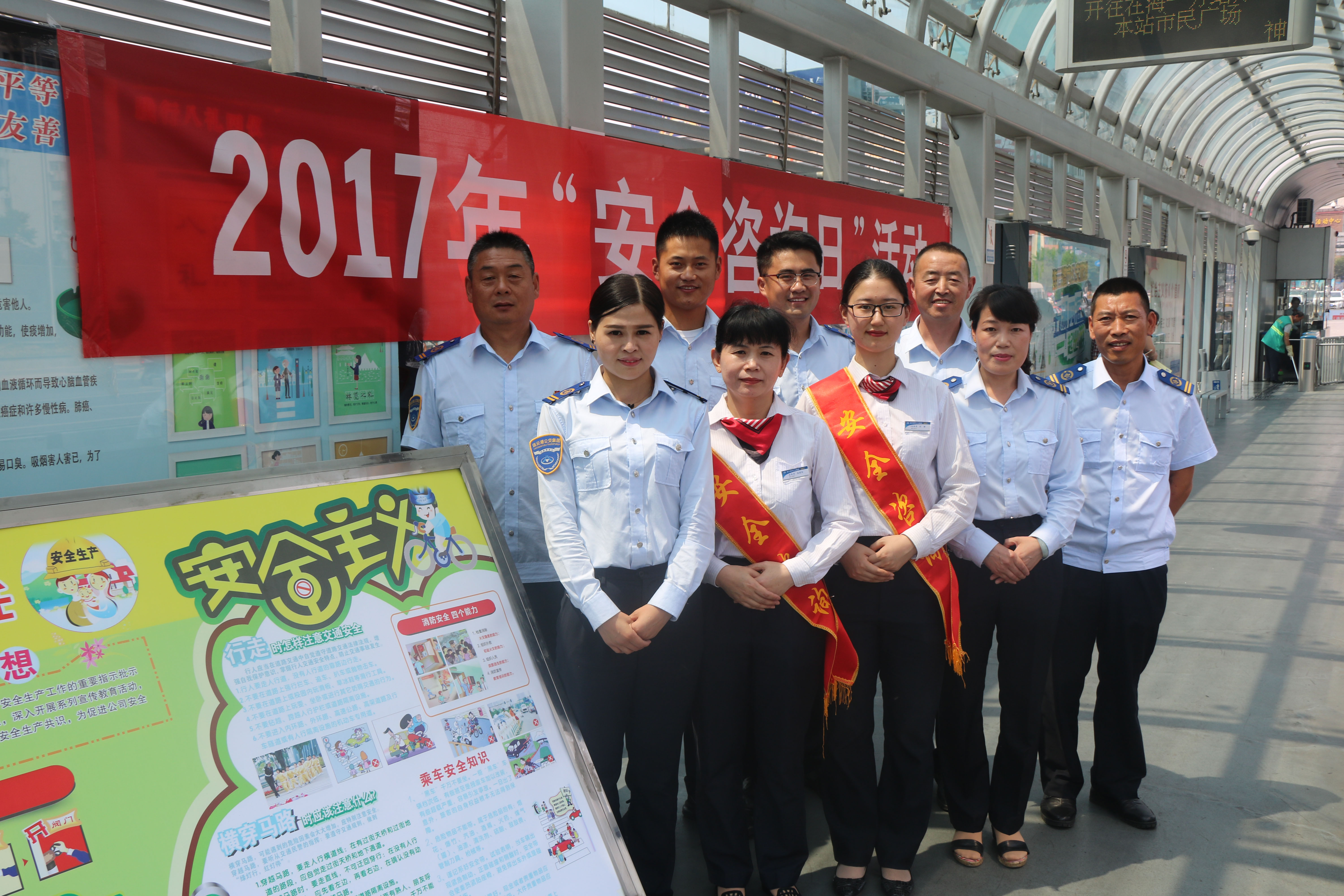 6月16日上午,公交快速公司分管安全经理崔建兵带领安全科成员、站务员和驾驶员一行12人在市民广场站开展安全生产咨询日活动。活动期间,通过发放宣传资料,将交通标志、酒后驾车的危害、非机动车安全行驶注意事项,行走、穿越马路注意事项、日常生活中常见的不道德行为,消防设备如何使用、消防安全四个能力,乘车安全知识、安全乘车告知,公交车乘车指南、文明礼让斑马线,口口相传于市民,为增强市民的阅读兴趣,安全科英美玲针对公交安全宣传内容亲自排版制作图文并茂的展板。活动期间交通控股集团安全部长刘元祥、副部长徐俊生对此次宣传给予充分的肯定,并指出安全生产咨询是传播安全理念、宣贯安全知识最有效的一种方式,此次宣传咨询活动,将“安全生产”的概念再次深入人心。