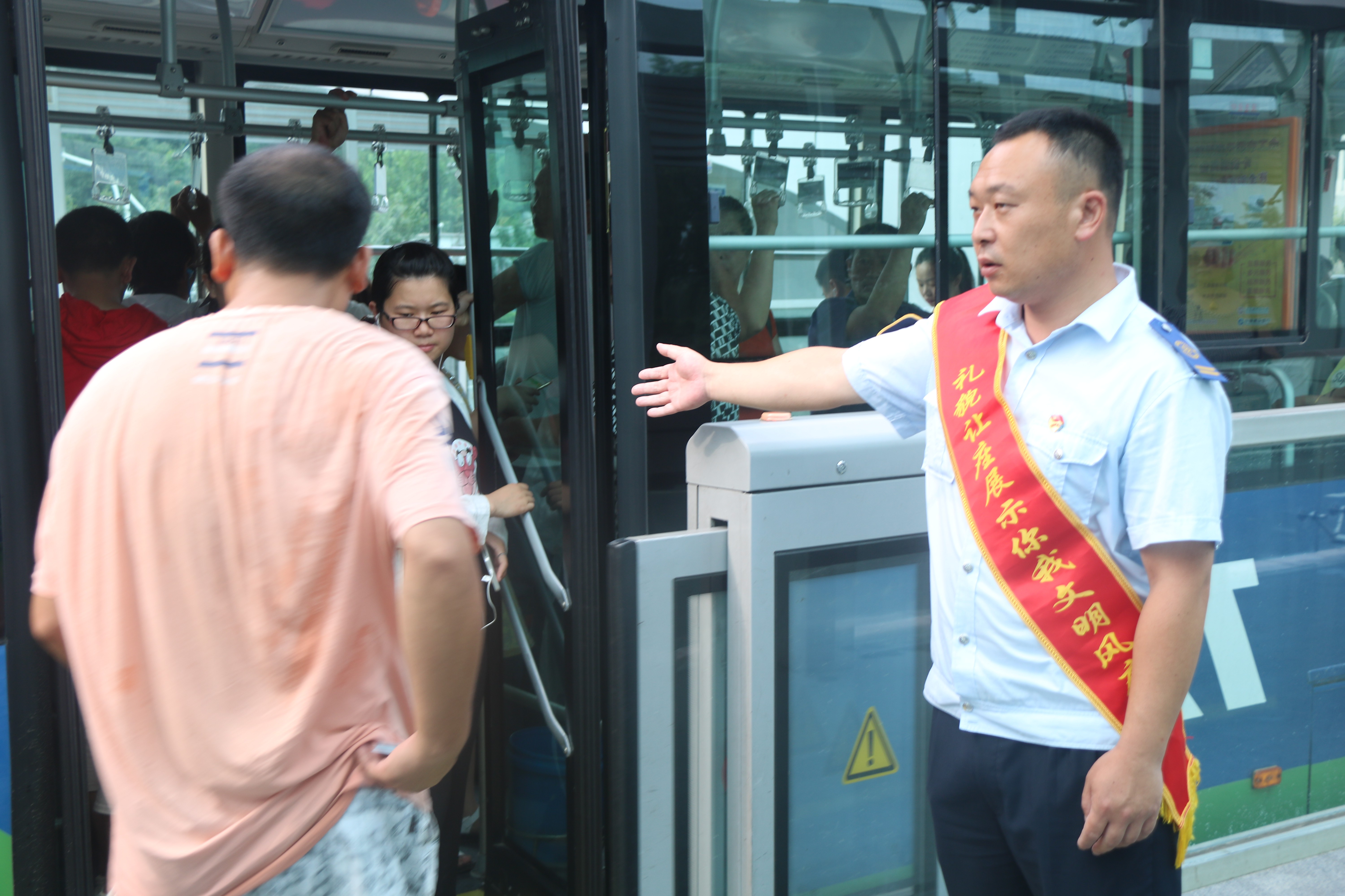 7月,烈日炎炎,气温飙升,天气虽然入伏,但是公交快速公司创文不入伏,继续推进创文站点值班和B1线精品线路打造工作。公交快速公司41名管理后服人员在高温天气中,按照创文值班表,坚持做好市民广场下行站、体育中心站和出口加工区站创文站点值班,主动引导乘客先下后上文明乘车,制止乘客站内不文明行为,提升乘客文明意识,营造文明站台、文明车厢的良好氛围。公司领导班子组成巡查组,对站点进行督导检查并要求值班人员按时按点、尽职尽责。