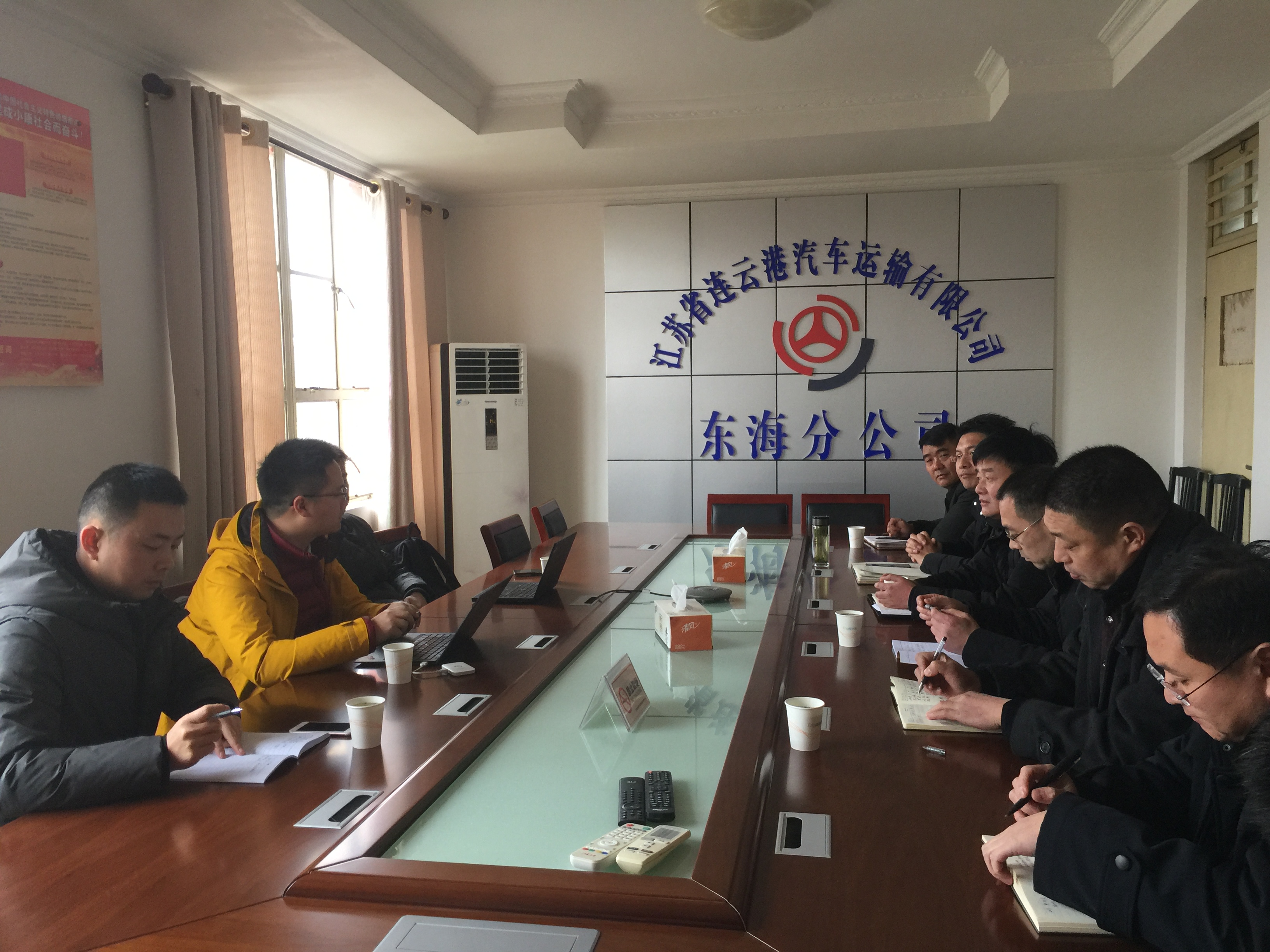 1月2日新华社江苏分社记者陆华东一行三人,在县交通运输局副局长孙七洲、运管所陈强所长、县委宣传部相关人员陪同下,到连汽东海分公司进行调研采访。