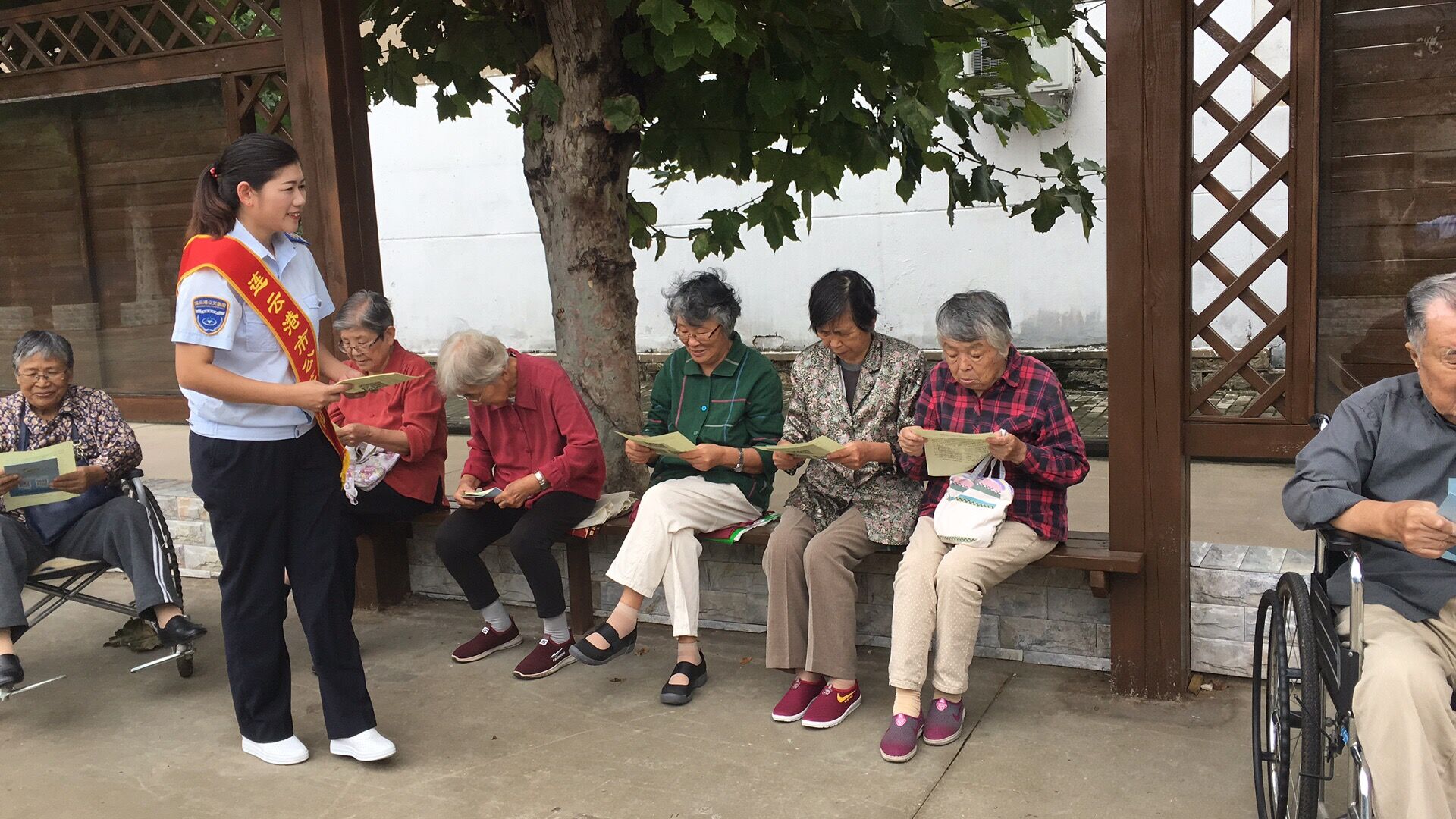 活动当天,志愿者们早早的来到活动场地,拉好横幅,将桌子一字排开,整齐摆放好公交线路简介及公交满意度调查宣传材料,并热情地向社区居民发放,邀请他们填写公交满意度调查问卷。值得一提的是,由于矿山院家属院是老小区,多数前来填写问卷的居民都已年过七旬,为确保问卷填写的规范性和准确性,志愿者们耐心地将问卷内容及选项一遍遍读给老人们听,仔细讲解,方便老人填写。