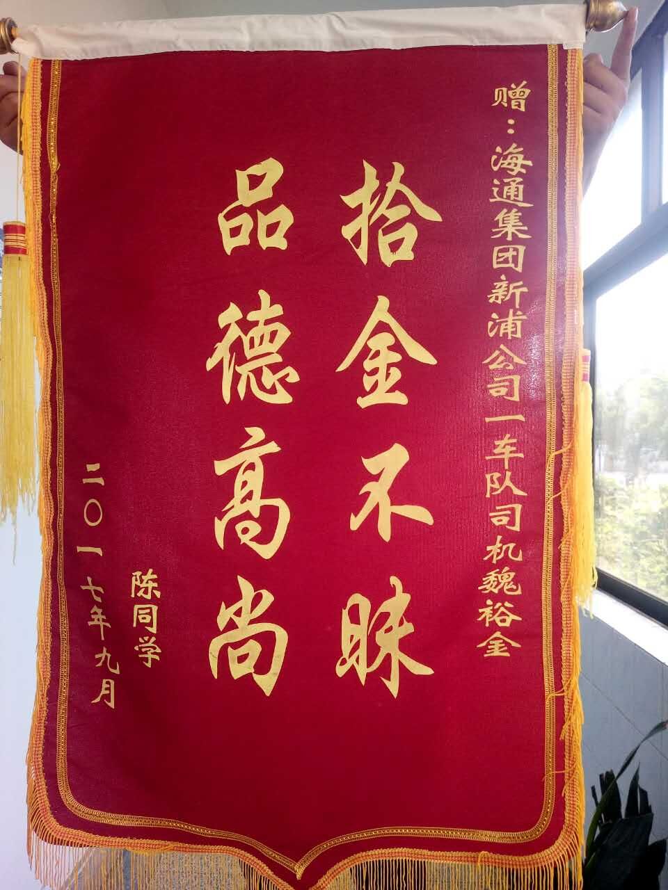 次日,女孩带着锦旗来到了车队,感谢公交人的拾金不昧精神,帮助她找回了手机。