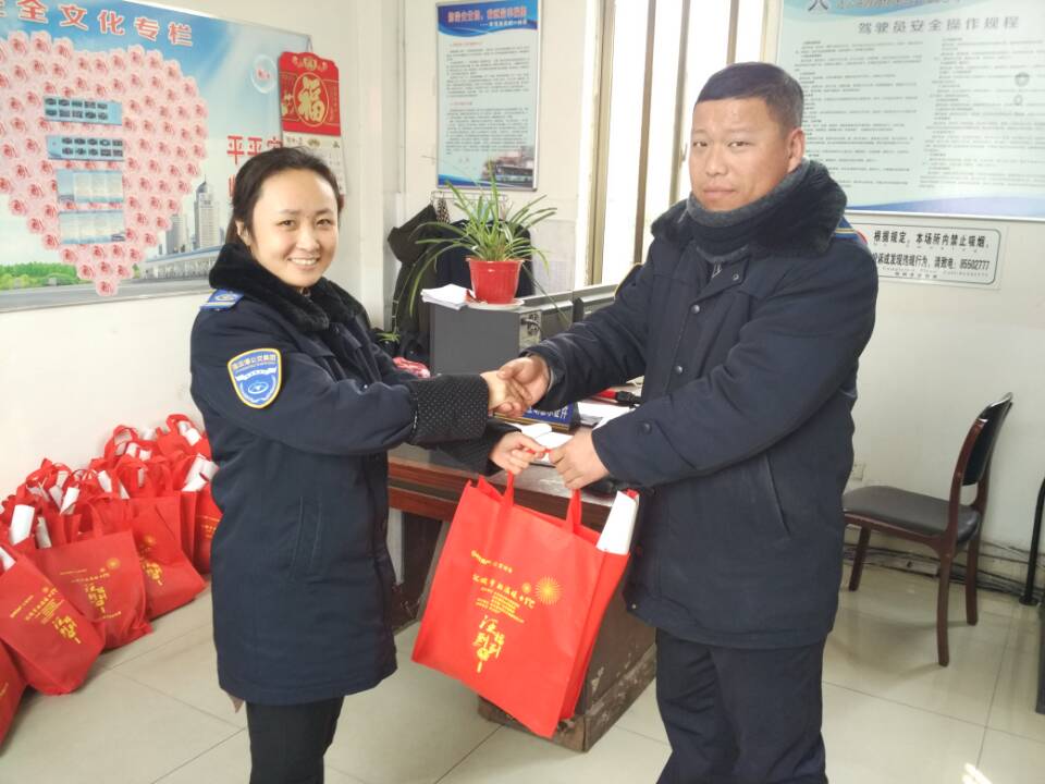 2月10日,由市委宣传部主办、祥生地产承办的“让城市的温度+1℃”这股春风吹进了公交集团一线员工的心里。在公交集团西城公交总站,正在岗位上驾驶员陈士弟收到了两位特殊乘客送过来的“大礼包”,里面有围巾、手套、口罩、春联等,感受来自市委宣传部沉甸甸的关怀,陈士弟十分感动,他坚定的说道:“春节临近了,乘客们归乡心切,大包小包的乘客络绎不绝,我们一定安全行驶车辆,春节期间严查危险品,平稳的将每一位乘客送到目的地”。作为一位有着11年驾龄的公交司机,陈士弟目前驾驶B11路公交,他每天从早上六点半出发,到晚上八九点钟最后一班,几乎全天都要奔波在路上。同样在寒冬腊月里坚守岗位的站务员赵莹、调度员唐林也收到来自市委宣传部的慰问礼品和亲切关怀,她们将继续努力,发挥公交人不怕苦不怕累的精神,立足岗位,服务好每位港城市民。