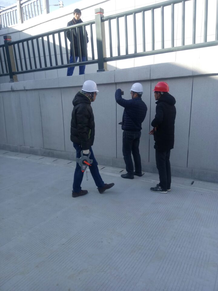 12月17日上午九点,巿科晶建设有限公司质检站检查组,在组长谢爱军的带领下来到陇海线沙集道口平改立工程现场,对主体工程的挡墙厚度和水泥混凝土路面平整度进行通车前的检查测量。