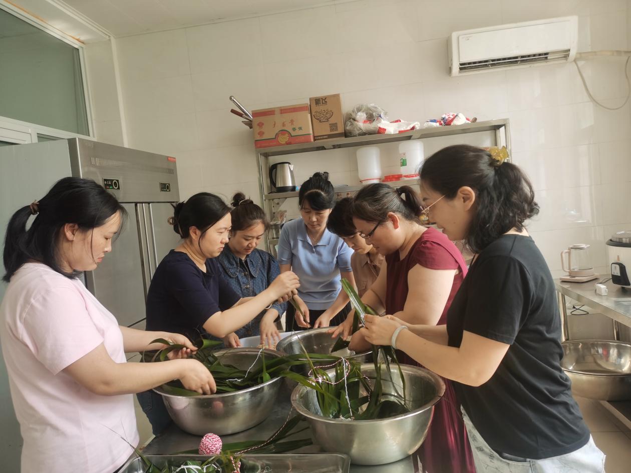 工会提前为大家准备好粽叶、糯米、蜜枣以及包粽子所需要的盆、桶、线、剪刀等必须用品。6月 20日下午,大家准时来到食堂,跃跃欲试,摩拳擦掌,包粽子活动正式开始。卷粽叶、放糯米、捆扎,粽叶在大家的手中上下翻舞,包粽子的手法,一折叶,二盛料、三压实,四包,五扎绳,看似简单,但要做个漂亮的粽子还是需要一点工夫的。在大家的努力下,一个个诱人的粽子出笼了。