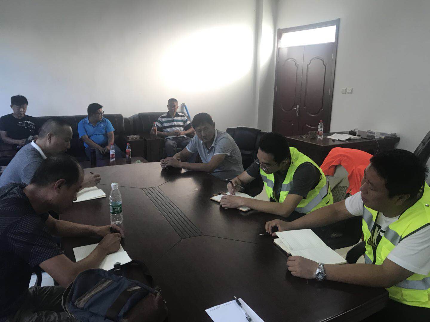 9月17日下午,丰达公司安全分管领导周忠民带领安全检查组一行到东疏港路面维修专项工程工地进行节前安全检查,并在工地现场召开安全例会。