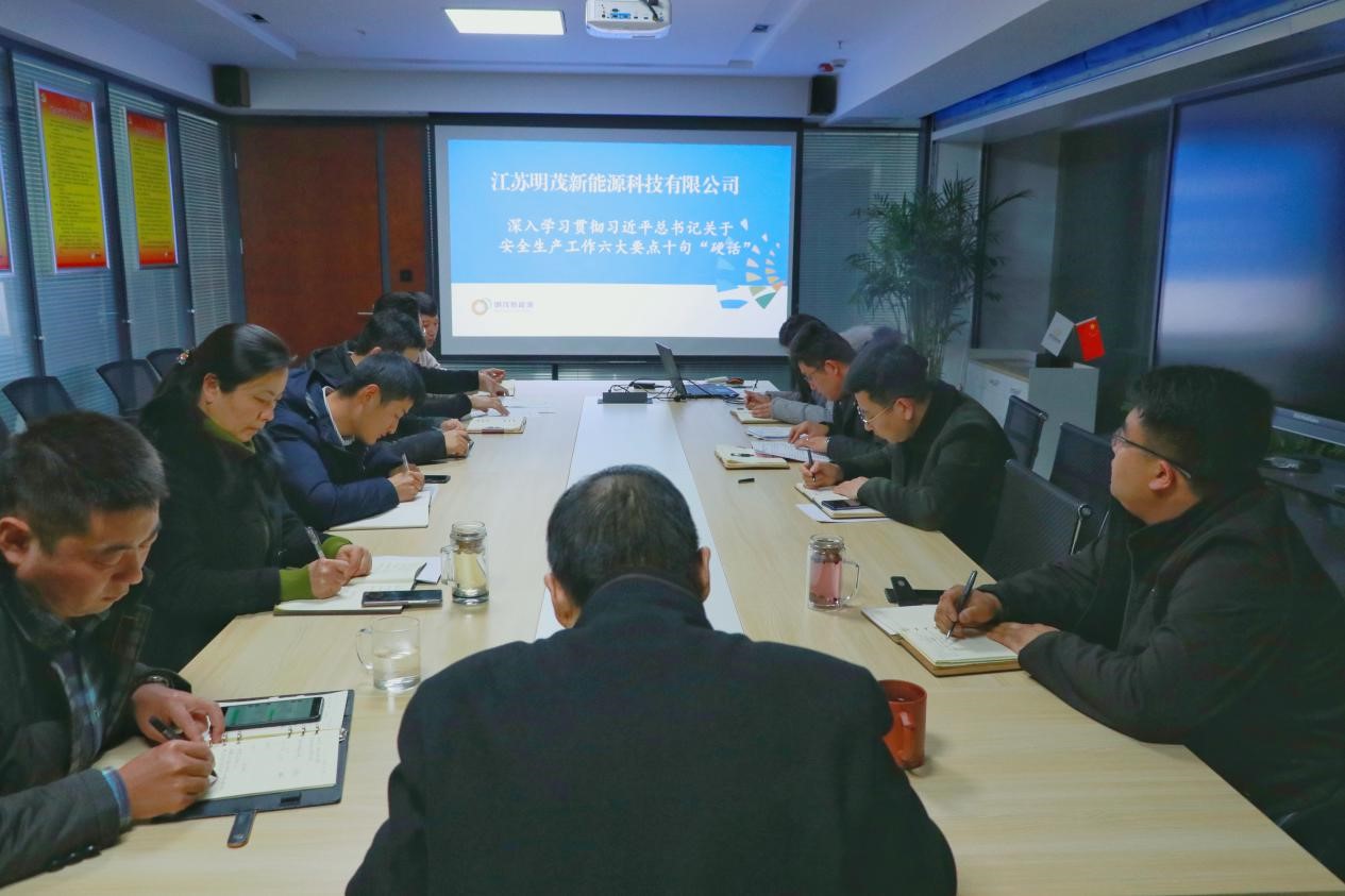 12月24日上午,明茂新能源公司总经理袁军组织学习习近平总书记关于安全生产重要论述的六大要点和十句“硬话”,公司安全分管领导沈金虎、公司副总刘东及各部门负责人参加会议。