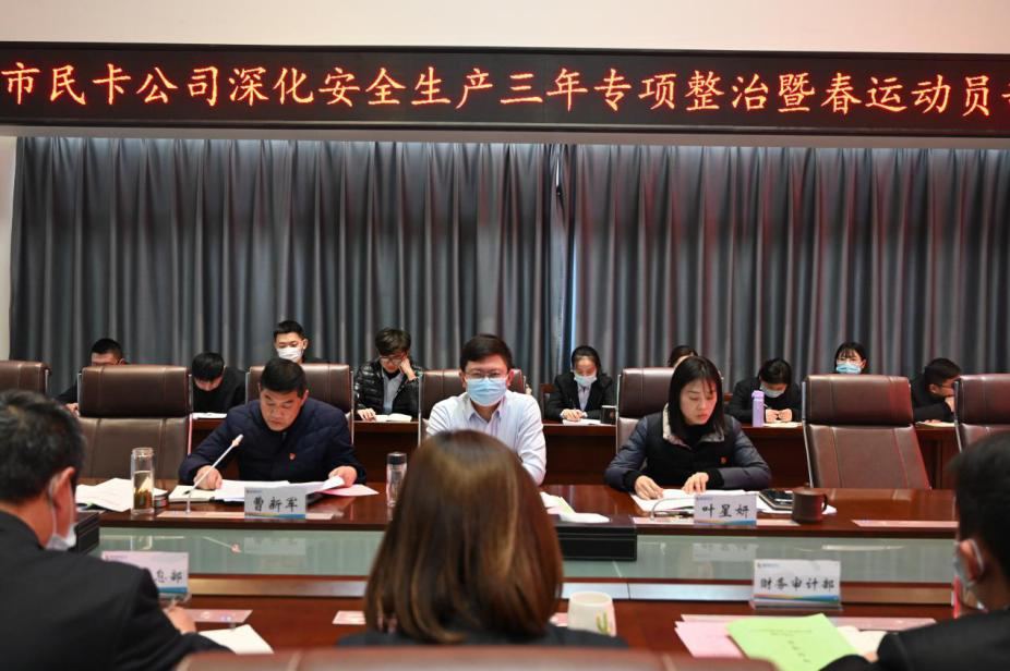 1月29日,市民卡公司召开深化安全生产三年专项整治暨春运动员部署会议,研讨公司安全生产三年专项整治行动方案实施细则和深化意见,促进专项整治有效落实、进一步推动专项整治纵深发展。会议同时还对春运工作部署动员,谋划常态化疫情防控措施。会议由公司党支部书记叶星妍主持,总经理周巍巍、工会主席曹新军、全体职工参加了会议。