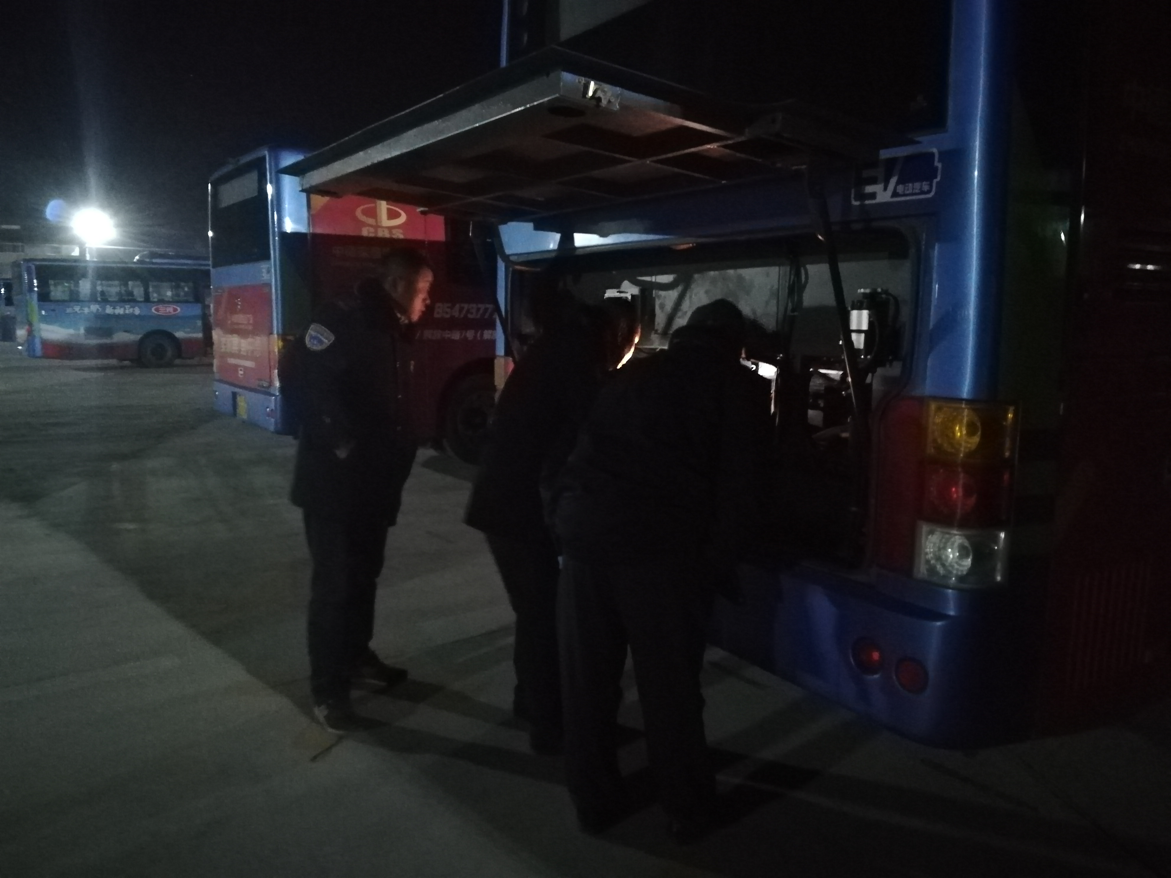 公司近期还开展了“夜间停车场安全巡查”活动,主要内容包括:站场内车辆停放是否有序、总电源是否关闭、电瓶仓是否干净无尘等,发现问题及时记录,均已限期整改完毕。公交事业一部通过各类培训、检查活动的开展,确保年末安全工作顺利完成,为2019年起好步、开好局做好充分准备。