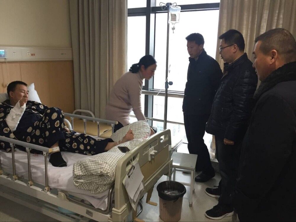 12月5日上午,连汽修理厂厂长李浩带领工会人员来到市第一人民医院东院区,看望慰问伤病职工李敬同志。
