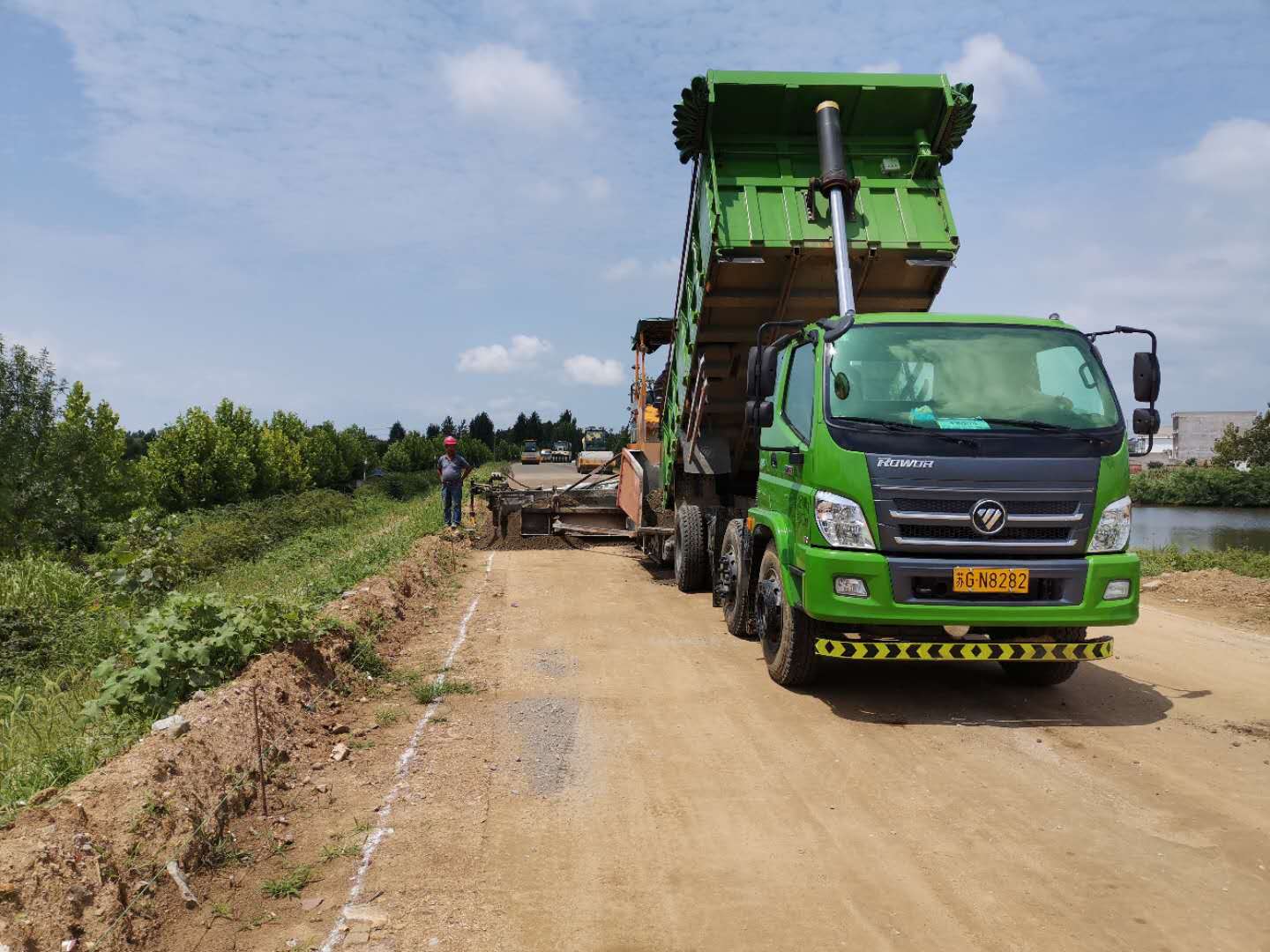 近日,石梁河水库生态修复一期工程一工区完成老副坝段水稳摊铺工作。老副坝路段全长3公里,根据设计,项目部在前期完成了深度为30公分的路槽开挖工作、50公分厚度的山场碎石填筑和10%的石灰土填筑。目前,项目部完成了3公里的水稳摊铺工作,共计摊铺水稳4440m3。根据施工计划,项目部下步将进行老副坝路面沥青摊铺和土路肩回填种植土工作。