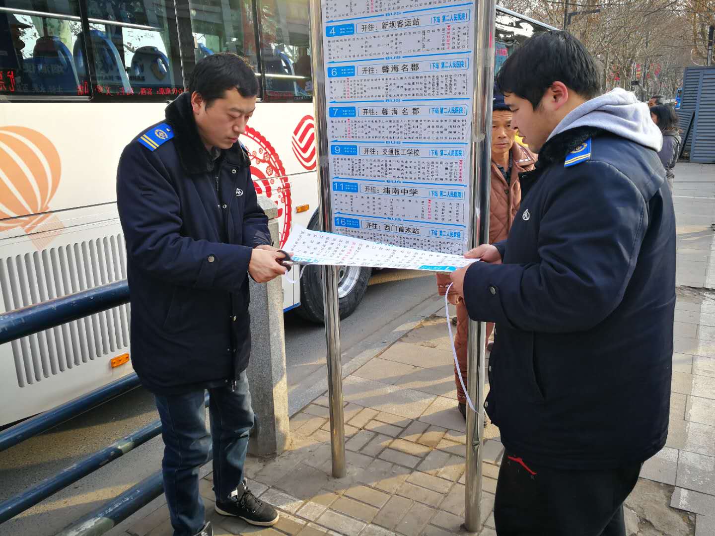 2019年春运工作将于1月21日正式拉开帷幕,为了在春运期间给市民提供一个环境优美、舒适便捷的出行服务,进一步巩固我市创文创卫成果,近期,公交集团稽查大队组织开展市区公交简易式站牌排查整改工作。