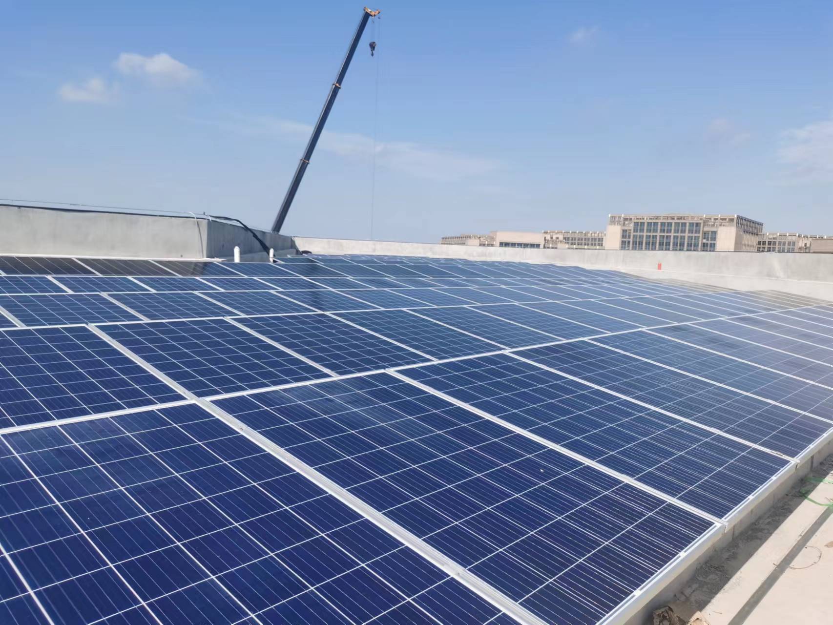 8月25日,明茂公司徐圩新区光伏场站项目楼顶光伏板安装完成,项目已进入到徐圩新区场站院内施工阶段,目前,徐圩新区公交场站钢结构车棚已开始进场吊装,计划月底前完成钢结构车棚架构安装。