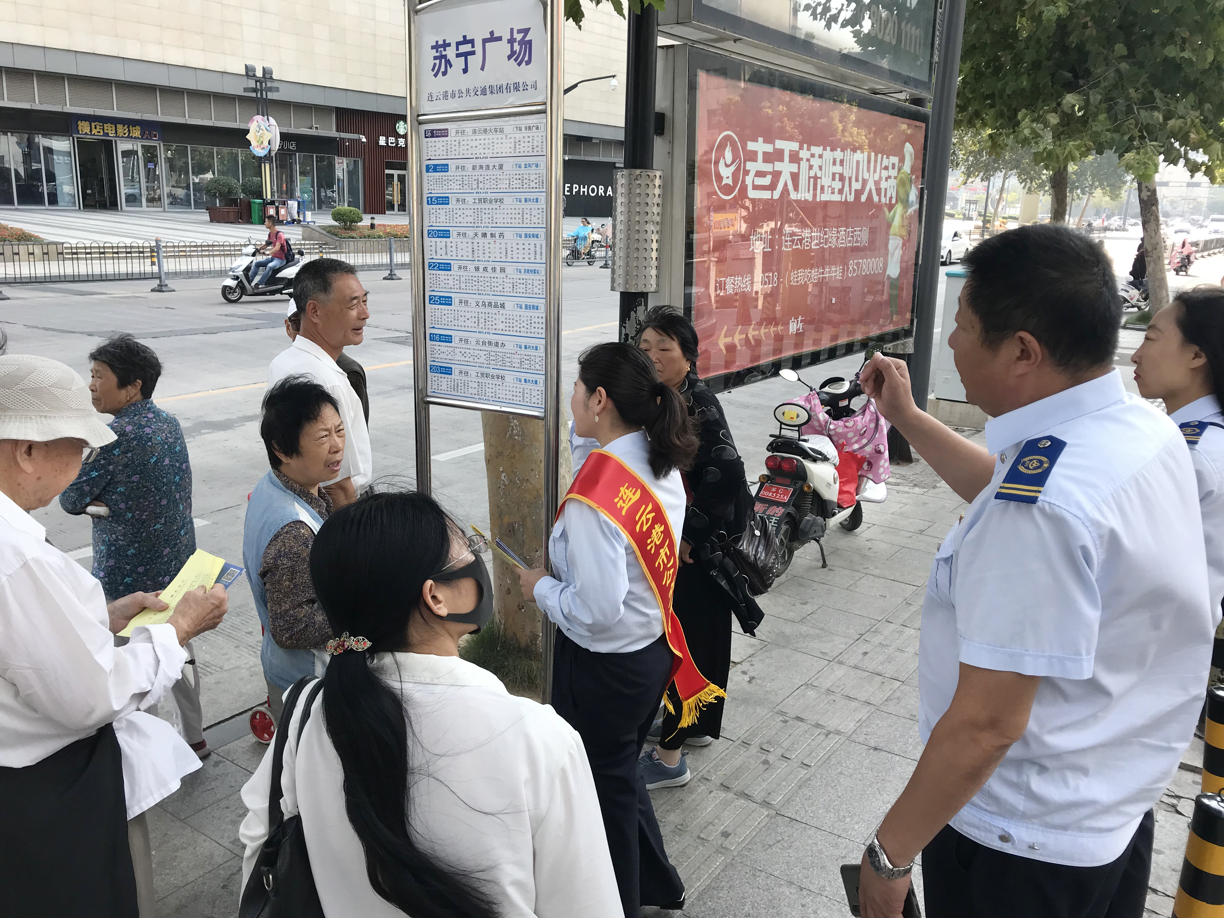 在海州客运站、在海一方公园、市民广场、龙河广场4处BRT站台以及嘉瑞宝广场、购物中心、第一人民医院、苏宁广场、海州批发市场、步行东街等站6处常规公交站台,公交集团安排40余名佩戴绶带的工作人员作为志愿者,现场发放公交出行宣传周倡议书1000余份、乘客满意度调查表600余份,志愿者们还协助公交驾驶员积极维持车辆进站秩序,引导乘客自觉排队上、下车,主动为老弱病残孕等特殊乘客提供便捷服务,倡导市民遵守乘车秩序,形成良好的社会风尚。