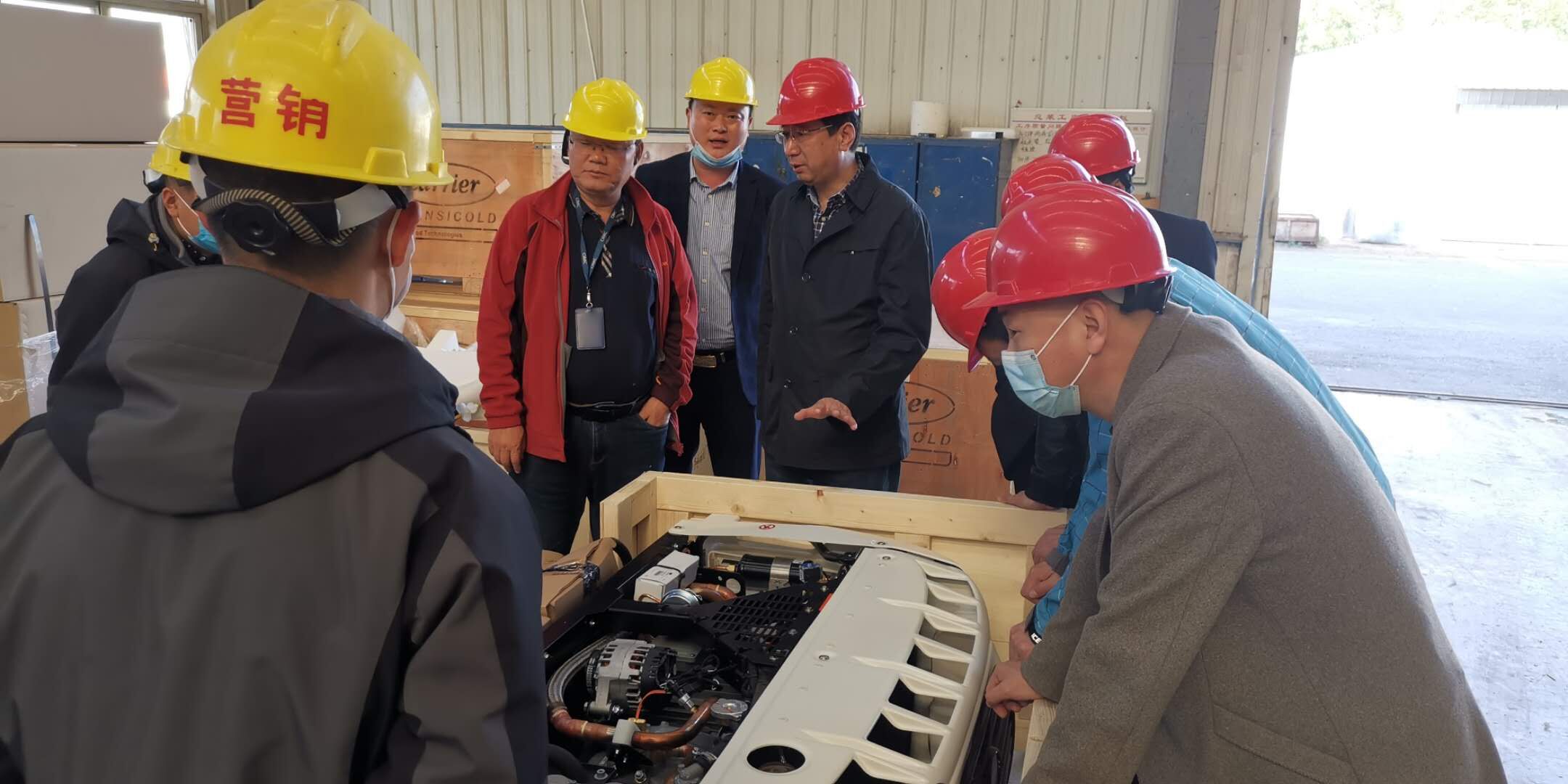 为加快汽车公司转型升级步伐,拓展冷链物流市场,减少疫情对客运主业带来的损失,4月24日,汽车公司党委书记、总经理刘佃华,副总经理赵东明带领相关处室及单位负责人到山东中集车辆有限公司考察冷链物流车。