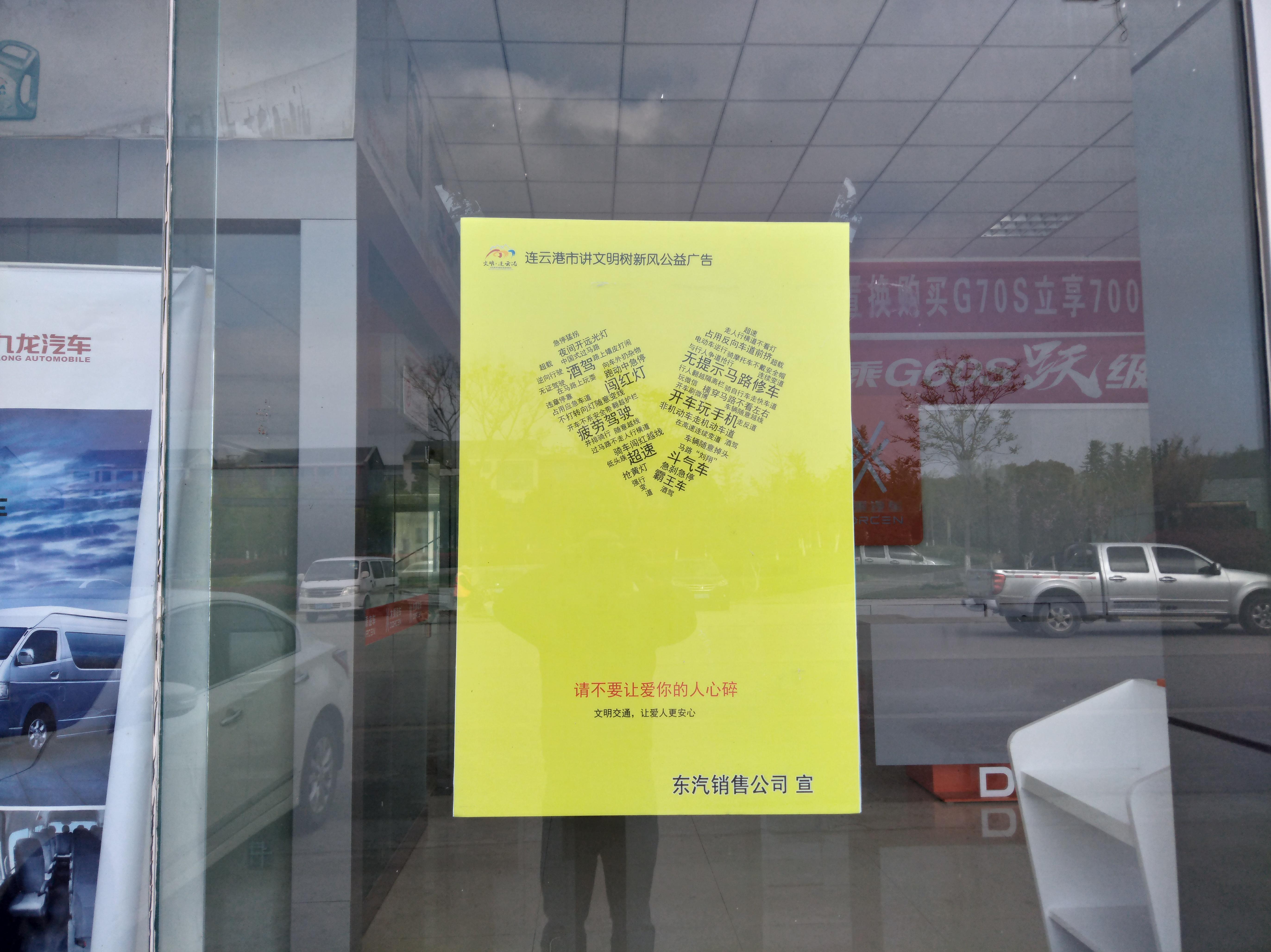 公司按照汽车服务公司的相关要求,对春节期间营造节日氛围所张贴的已经褪色的“福”字、对联进行了清理、清除,并对润滑油销售展厅已经破损的禁烟标识进行了更换。公司选取优秀的“中国梦”“文明交通”“关爱未成年”等公益广告制成宣传画,并张贴在公司汽车销售展厅的醒目位置。公司还通过微信群发的方式进一步加强宣传,在全公司营造出更加浓厚的“创文”氛围。