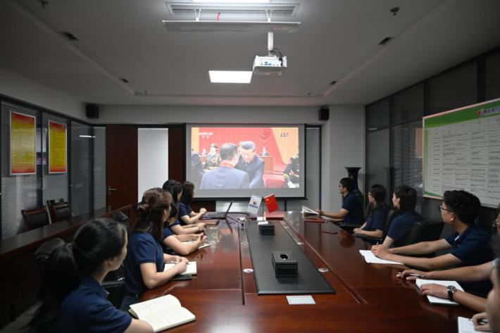 9月8日上午,市民卡公司工会组织党员干部、职工集体收看全国抗击新冠肺炎疫情表彰大会,中共中央总书记、国家主席、中央军委主席习近平向国家勋章和国家荣誉称号获得者颁授勋章奖章并发表重要讲话,对全国抗击新冠肺炎疫情先进个人、先进集体,全国优秀共产党员、全国先进基层党组织进行表彰。