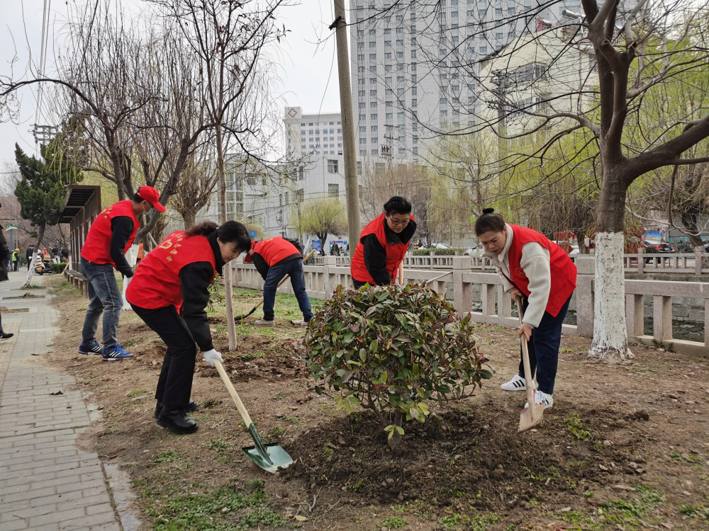 3月5日,在市区龙尾河畔民主路附近,一群身穿红马甲的交通集团和站北社区志愿者正在挥锨培土,开展新春义务植树活动。这是交通集团志愿者连续第4年到龙尾河绿化带与站北社区开展义务植树活动,目前许多苗木已经长大成荫,并成为龙尾河畔的靓丽风景。