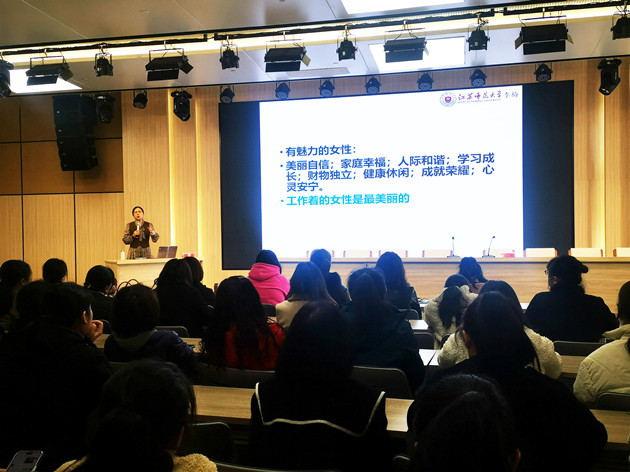 3月6日下午,在新浦汽车总站“雷锋车”大讲堂正在举办一场“心暖花开 幸福绽放”女职工心理健康专题讲座,集团近百名女职工齐聚一堂,专注的倾听由江苏师范大学心理系教授、硕士生导师李梅分享的“压力管理与心理健康”专题讲座。