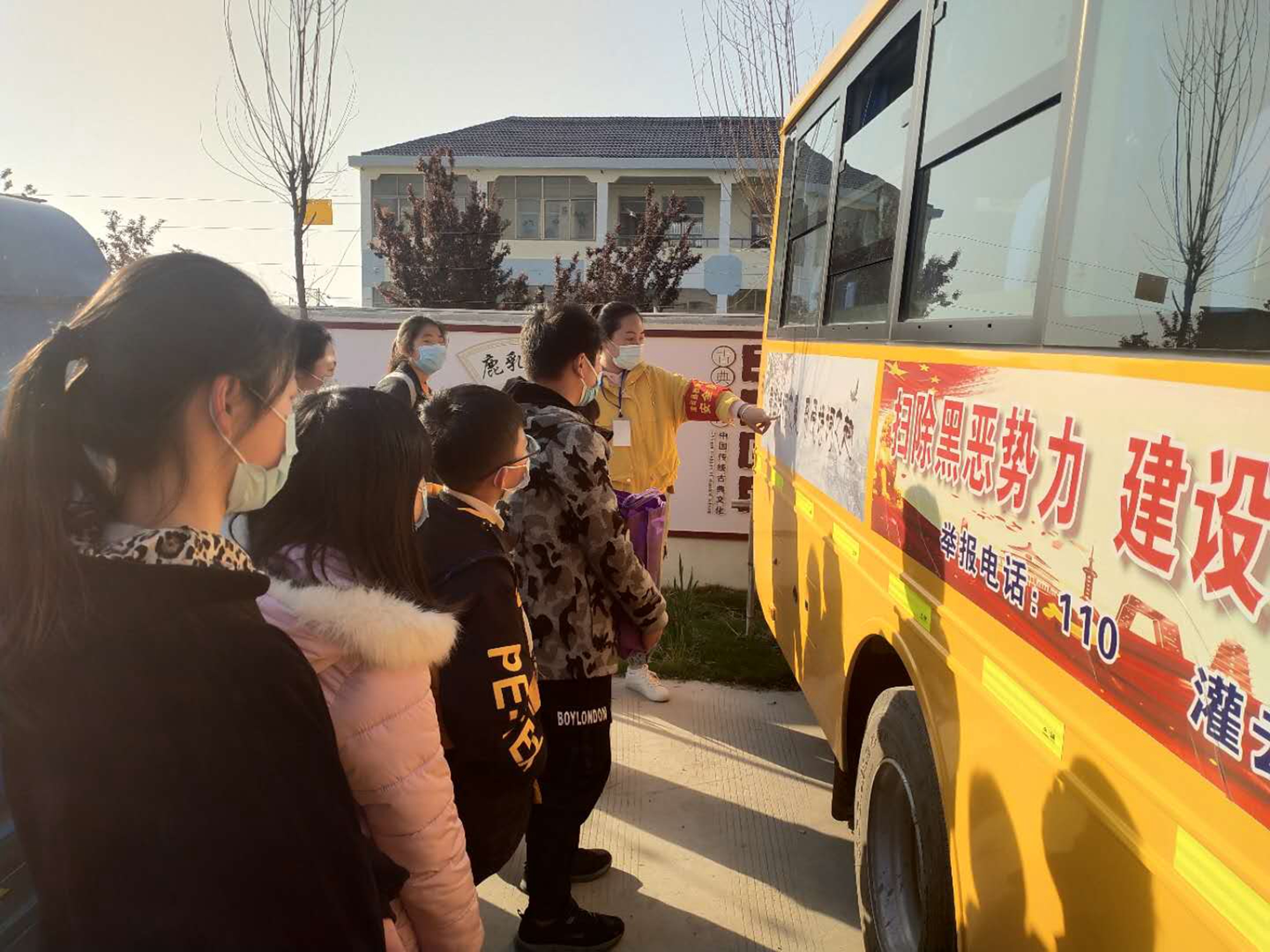 乡镇的路弯弯绕绕,为了方便家长接送,都会设好几个站点。因为平日经常接送,家长互相之间都比较熟悉,无形中就有了一种默契。有的家长临时有事,就会托付邻居帮忙送到指定接送点,并打电话告知照管员。在接齐孩子们后,校车会将孩子准时载到学校内。