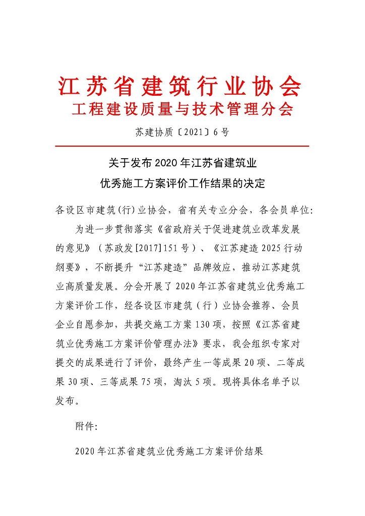 8月31日,从江苏省建筑行业协会工程建设质量与技术管理分会获悉,江苏海建公司申报的《桥梁拆除专项施工方案》荣获二等奖。本次评审中,全省共130项施工方案参评,海建公司排名第35名,获得二等奖。