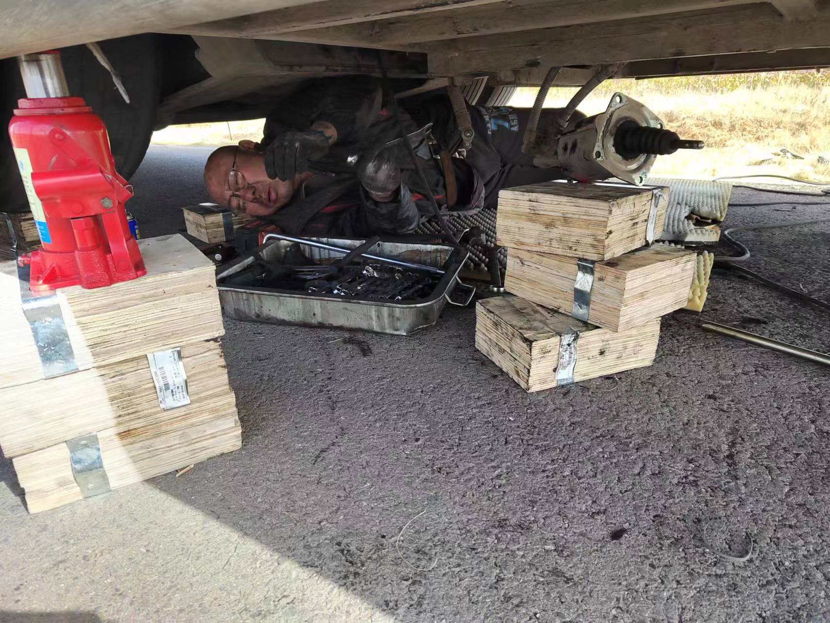因车辆底盘低,距离路面大概二、三十厘米,又没有维修地沟,这给抢修工作造成了不小的影响。朱彬用千斤顶与垫木把车辆顶起,勉强把身体钻进车底,人就在这狭矮的车底来回操作拆卸着零件,身体僵硬了便换个姿势,双臂酸痛了便换个角度,时间一点一滴的过去了,汗水浸湿了他的脸颊,爬满了他的整个后背。至3月26日下午,历经近18个小时的连夜奋战,车辆的离合器片终于更换完毕。