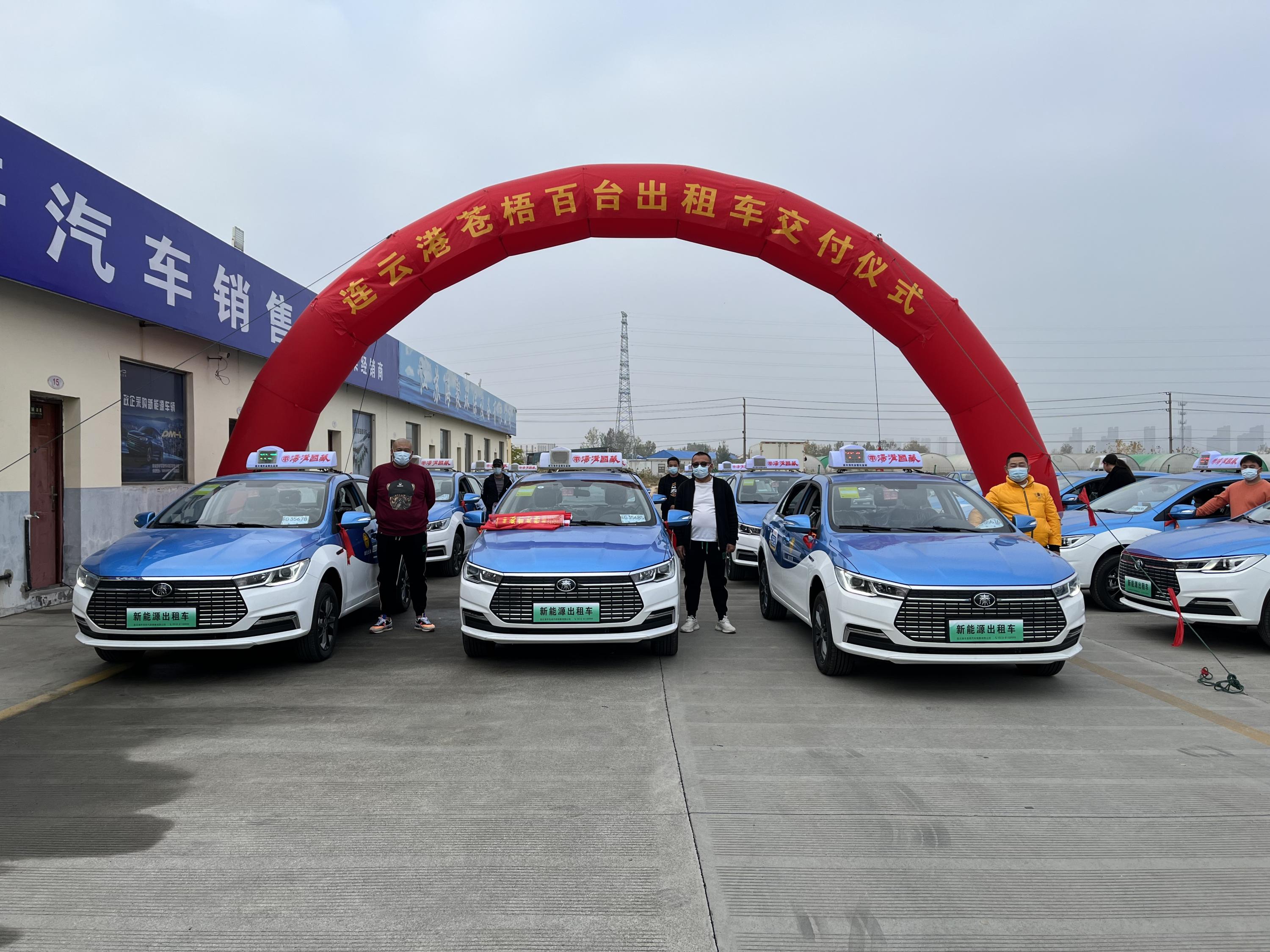 交付的出租车为苍梧销售公司采购销售给连云港市威连汽车出租有限公司、连云港市全福出租汽车有限公司、连云港市连汽出租汽车有限公司等大客户使用。本次出租车更换共计36台,全部为比亚迪汽车秦EV纯电动车型,此次销售得到了港城几大出租公司的大力支持,更好的推动了港城出租车油改电的工作。